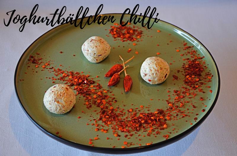 Cremige, salzige von Hand gerollte Joghurtbällchen mit Chilli verfeinert & in Sonnenblumenöl eingelegt.